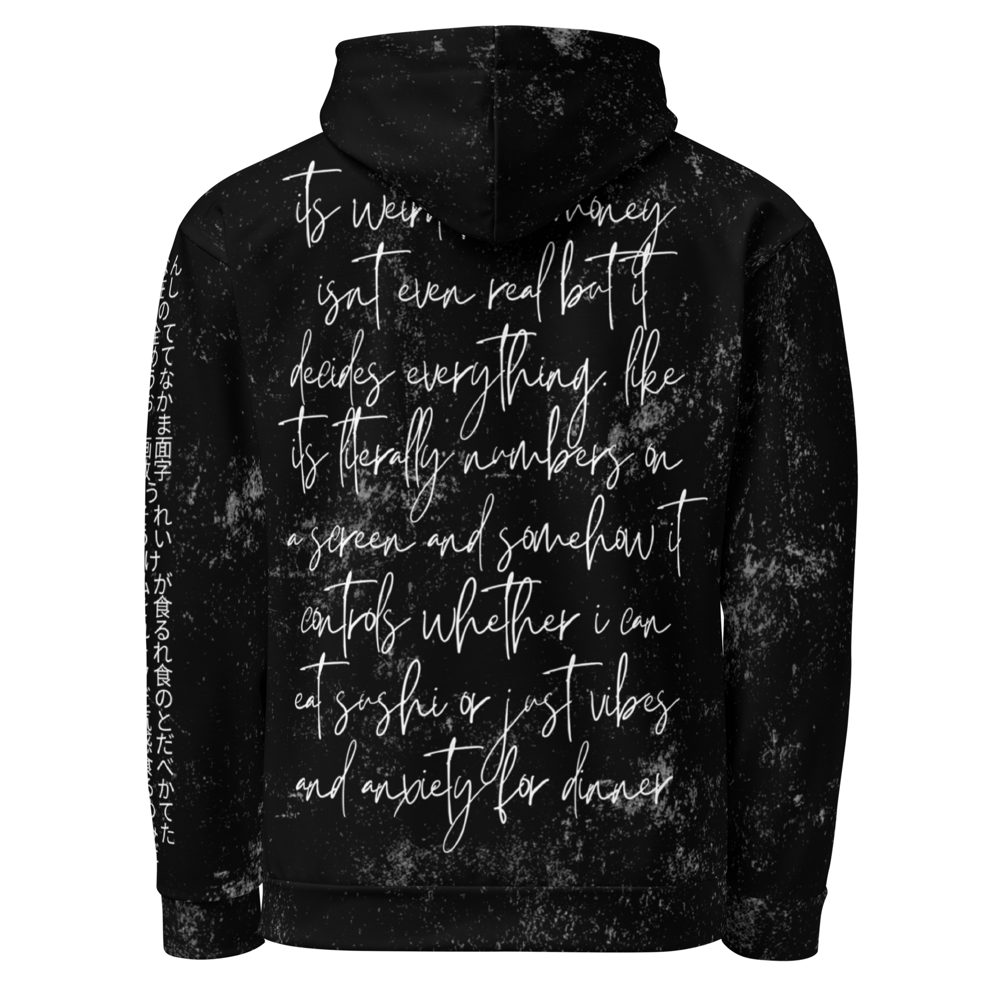 its weird how money isnt even real but it decides everything. like its literally numbers on a screen and somehow it controls whether i can eat sushi or just vibes and anxiety for dinner.